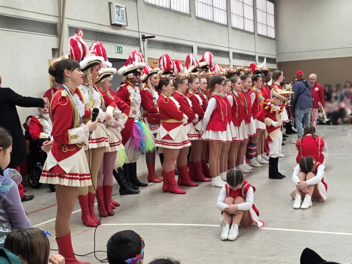Zunächst wurde in den Klassen gefeiert: Wir haben gelacht, gegessen und natürlich auch getanzt. Danach ging es weiter in die Turnhalle, wo die Karnevalsgesellschaft „Schöpp op“ zu Gast war. Viele Kinder aus unserer Schule – und sogar ehemalige Schülerinnen und Schüler – sind bereits Mitglieder der Garde und zeigten uns tolle Tänze. Die Stimmung war großartig und wir haben gemeinsam zur Musik des Fanfarencorps mitgetanzt.