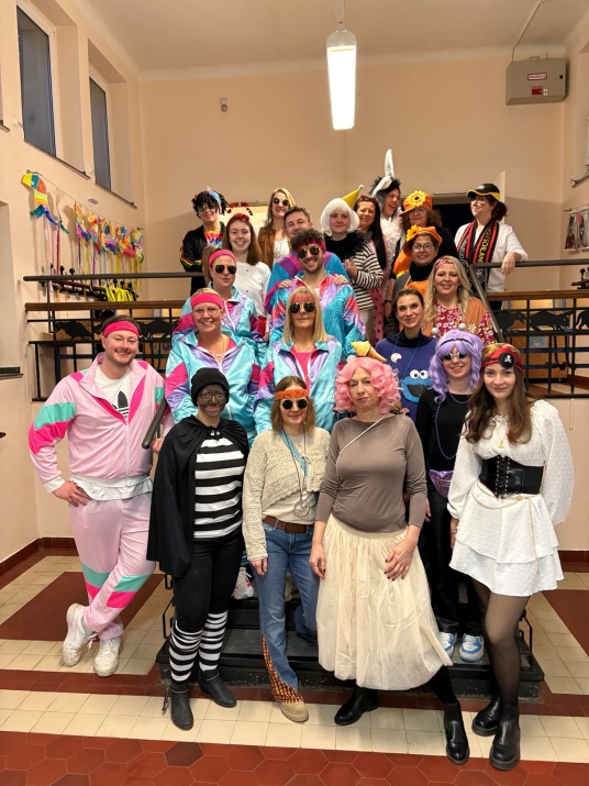 Am heutigen Tag war es wieder soweit: Wir haben in der Schule Karneval gefeiert – und selbst der Regen konnte uns die gute Laune nicht nehmen! Viel zu lange mussten wir auf den Moment warten, an dem wir unseren Tanz zum Lied „Oben gute Laune, unten gute Laune“ endlich gemeinsam präsentieren konnten.